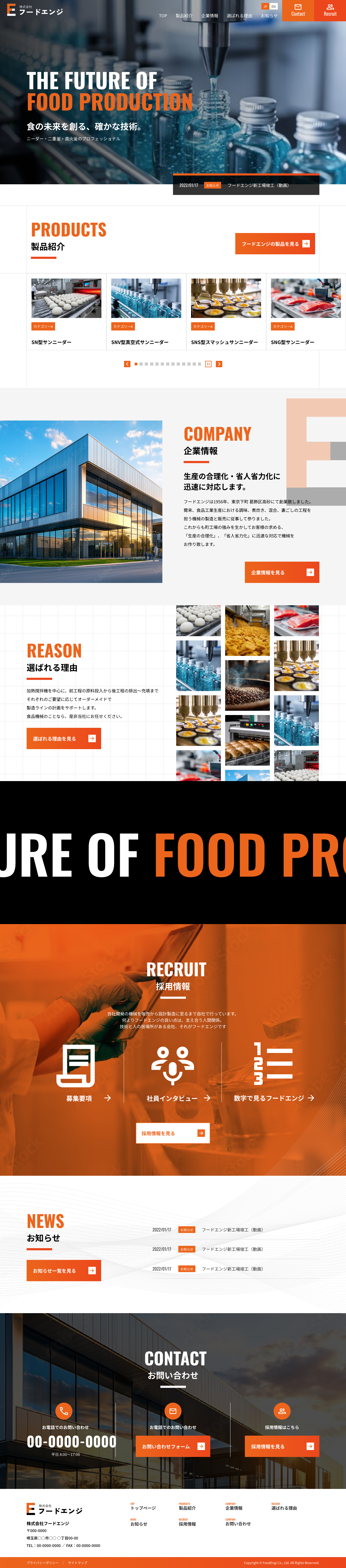 TOPページデザイン:食品加工機械製造会社